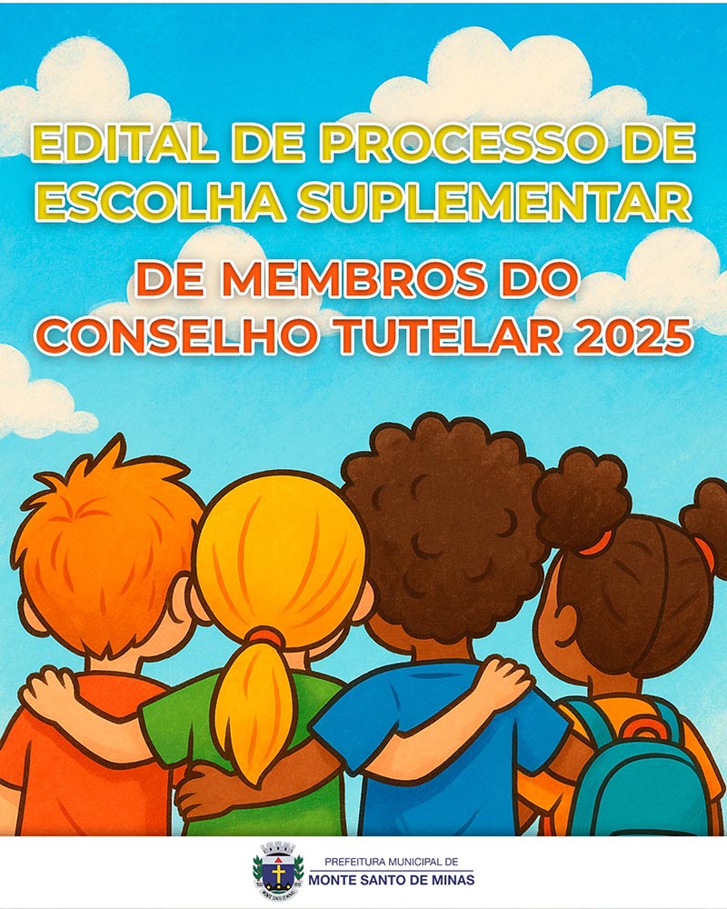 A Prefeitura de Monte Santo de Minas publicou o edital do Processo Suplementar de Escolha de Membros Suplentes do Conselho Tutelar, que atuará no triênio 2025–2028.