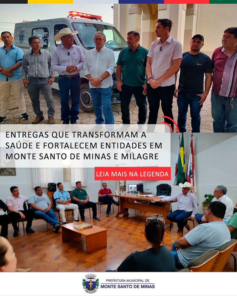 Entre os destaques, está a entrega de uma nova ambulância em Milagre, que ampliará o atendimento de urgência à população local. Já em Monte Santo de Minas, entidades sociais foram contempladas com recursos por meio do Projeto Cuidar, iniciativa voltada ao fortalecimento de instituições que atuam diretamente com ações sociais e comunitárias.