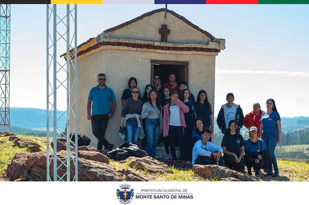 Ao chegarem ao topo, os jovens puderam conhecer a história da igrejinha local, ouvir curiosidades sobre o município e explorar a riqueza cultural e natural da zona rural.