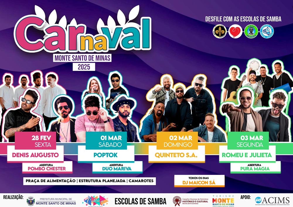 O evento contará com uma estrutura planejada, incluindo praça de alimentação e camarotes. No domingo, haverá matinê para as crianças se divertirem. O Carnaval de Monte Santo de Minas promete ser inesquecível, com muita energia e animação para todos os participantes.
