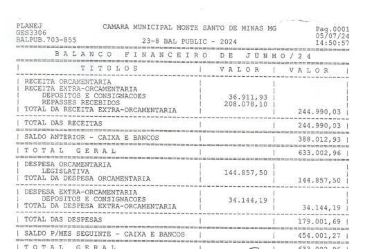 Balancete Câmara Monte Santo de Minas – Janeiro 2024
