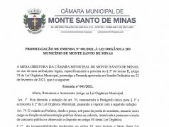 Promulgação de Emenda Nº 001/2021, à Lei Orgânica do Município de Monte Santo...
