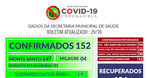 Monte Santo de Minas encerra outubro com 152 pessoas infeccionadas com...