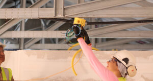 Mulheres voluntárias participam na construção de novo local de reuniões das...