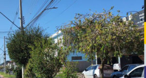 Poda de árvores nos canteiros centrais