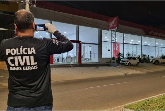 Criminosos colocam fogo em concessionária de motos após tentativa de assalto em Passos, MG