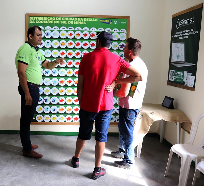 Além disso, a equipe do departamento de Geoprocessamento da cooperativa estará na Fazendinha para apresentar aos cafeicultores do Sul de Minas Gerais as condições meteorológicas dos últimos meses na área monitorada pela Cooxupé e como o clima pode influenciar no sistema produtivo cafeeiro.