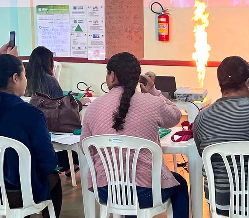 A formação também abordou os princípios da combustão e a importância de agir com rapidez e responsabilidade.