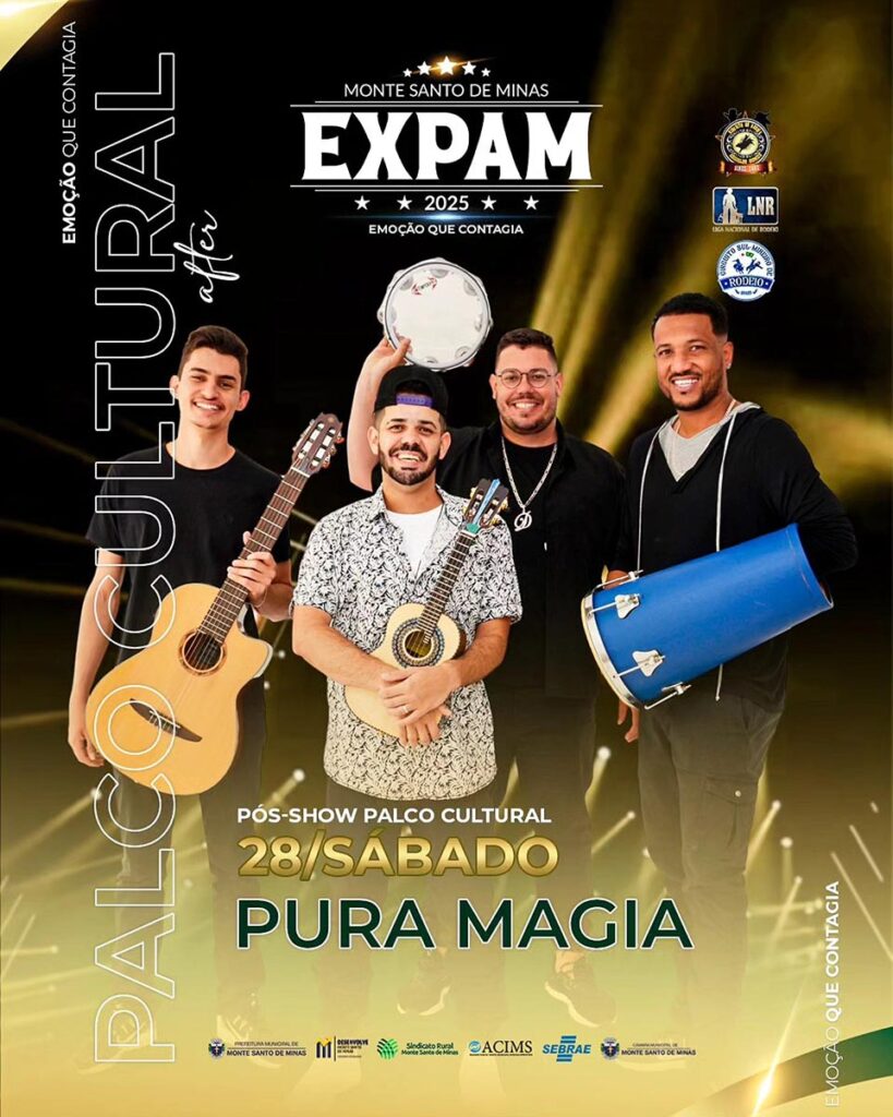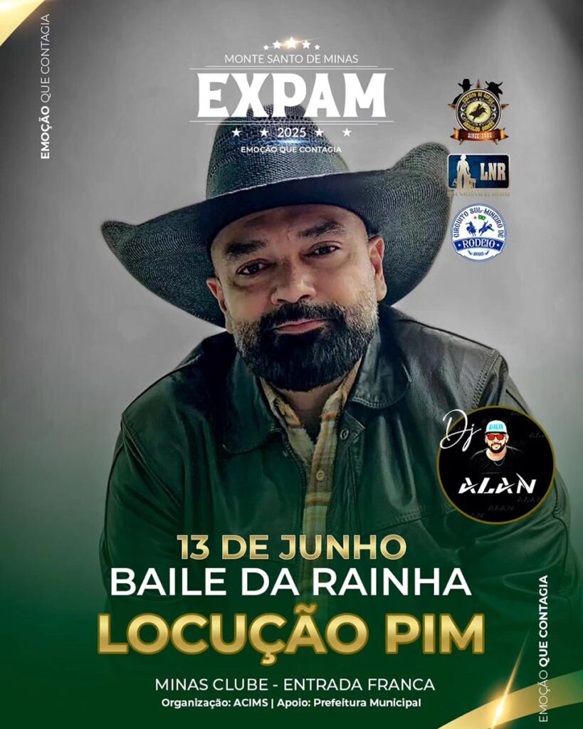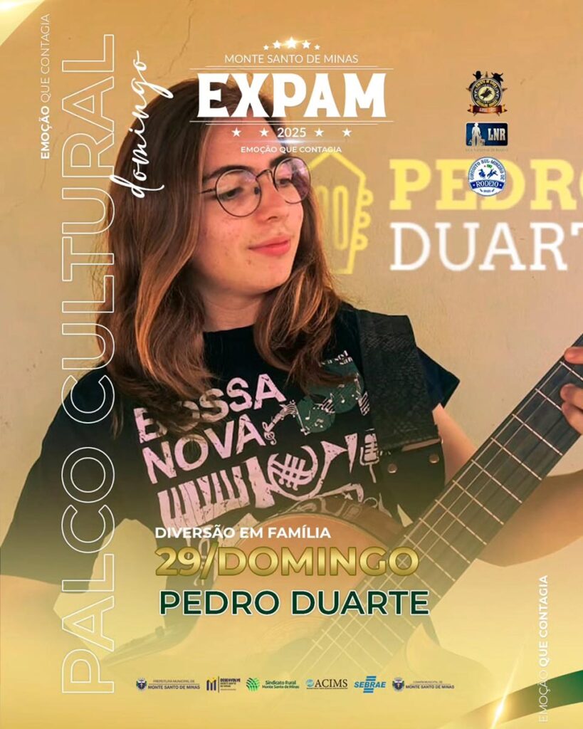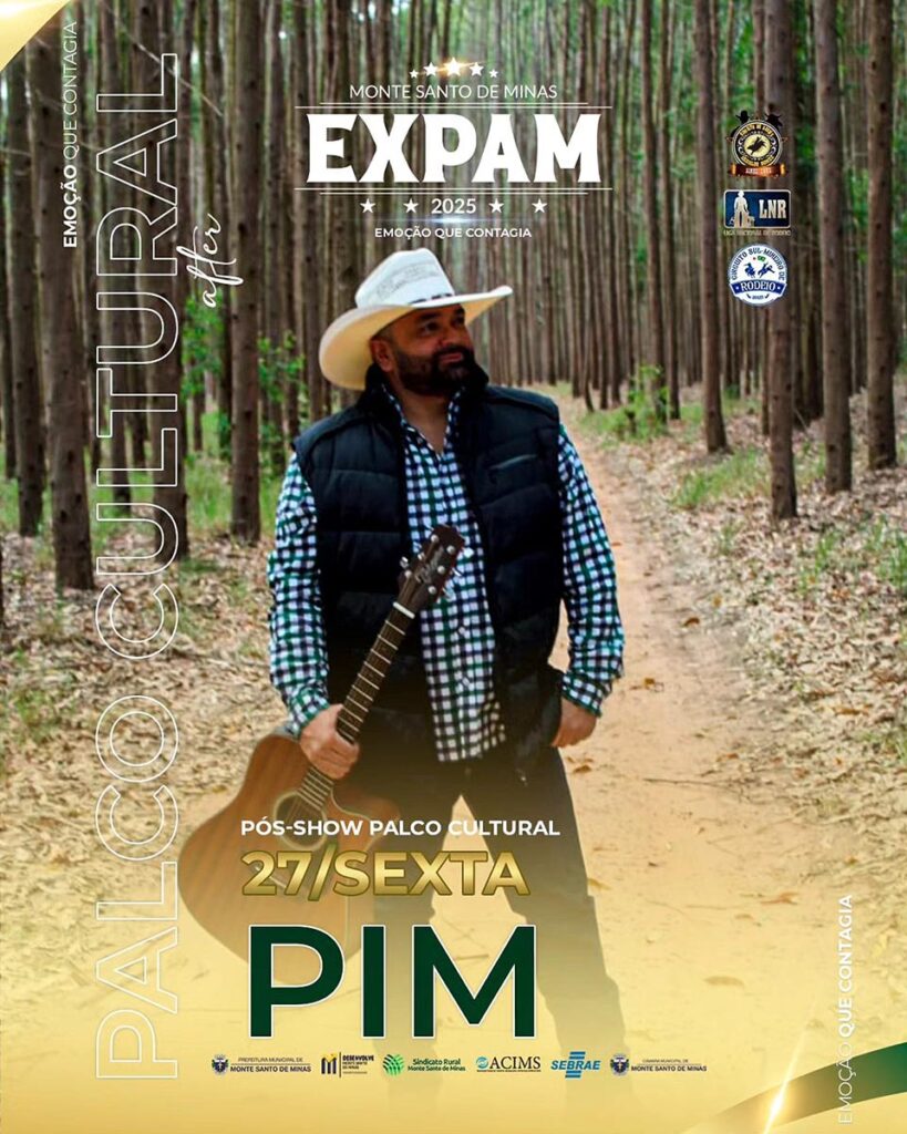 A tradicional EXPAM 2025 acontecerá entre os dias 26 e 29 de junho em Monte Santo de Minas. A festa trará grandes nomes da música como João Bosco & Vinícius, Gilberto & Gilmar, João Neto & Frederico, Salim & Zé Marco, além de atrações locais no Palco Cultural After. O camarote terá vista privilegiada, bar exclusivo, banheiros privativos e churrasco americano. Os ingressos custam R\$ 120 por dia ou R\$ 400 o pacote para os quatro dias.