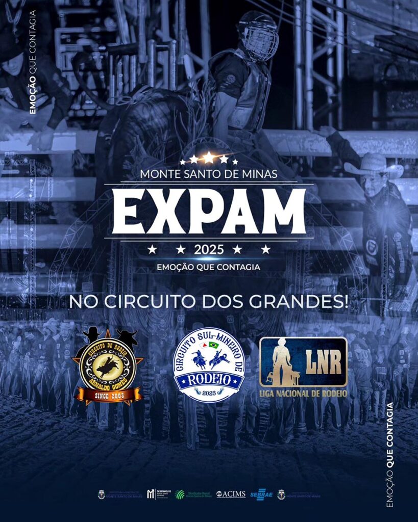 A EXPAM deste ano será uma etapa oficial da Liga Nacional de Rodeio, do Circuito Sul Mineiro e do Circuito Arnaldo Gomes, elevando o evento ao circuito dos maiores do país. A arena será comandada pelo locutor Alex Paschoini e o laçador Antônio Rabello, garantindo adrenalina e emoção para o público. A cobertura ficará por conta das influencers Jana Fernandes e Paola, que trarão os bastidores da festa.
