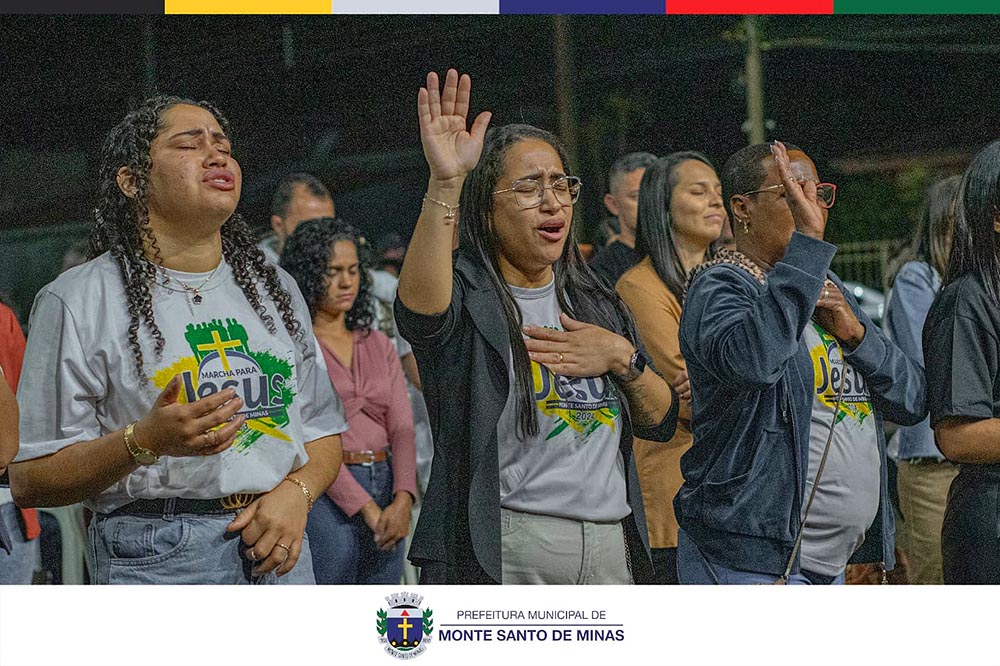 Monte Santo de Minas foi palco de uma noite de celebração e espiritualidade no último sábado (26), com a realização da Marcha para Jesus 2025.