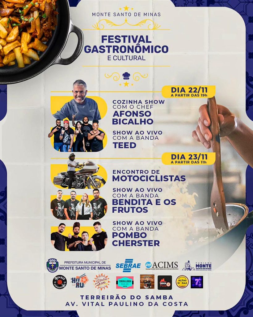 O Festival Gastronômico e Cultural de Monte Santo de Minas promete ser um fim de semana inesquecível, com boa comida, boa música e a alegria que já é marca registrada da cidade.