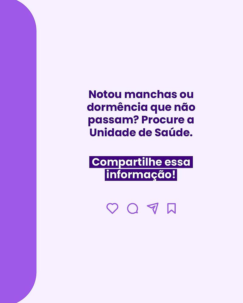 Para a nossa comunidade, é vital estar atento aos sinais do corpo. Manchas na pele esbranquiçadas, avermelhadas ou amarronzadas que apresentem perda de sensibilidade ao calor, dor ou tato são os principais alertas.