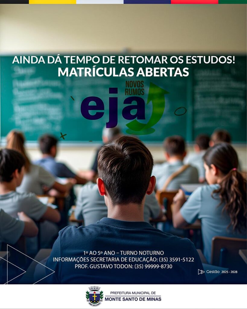 #EJA #EducaçãoParaTodos #MonteSantodeMinas #JFPNoticias #Noticias #EnsinoNoturno #TransformeSuaVida #Oportunidade #EducaçãoInclusiva #VoltaÀsAulas