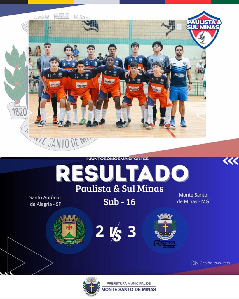 #MonteSantodeMinas #FutsalDeBase #EsporteJuvenil #CategoriasDeBase #Futsal2025 #JuntosSomosMaisFortes #FormaçãoDeAtletas #TalentosDoFutsal #VitrineEsportiva #OrgulhoDaCidade