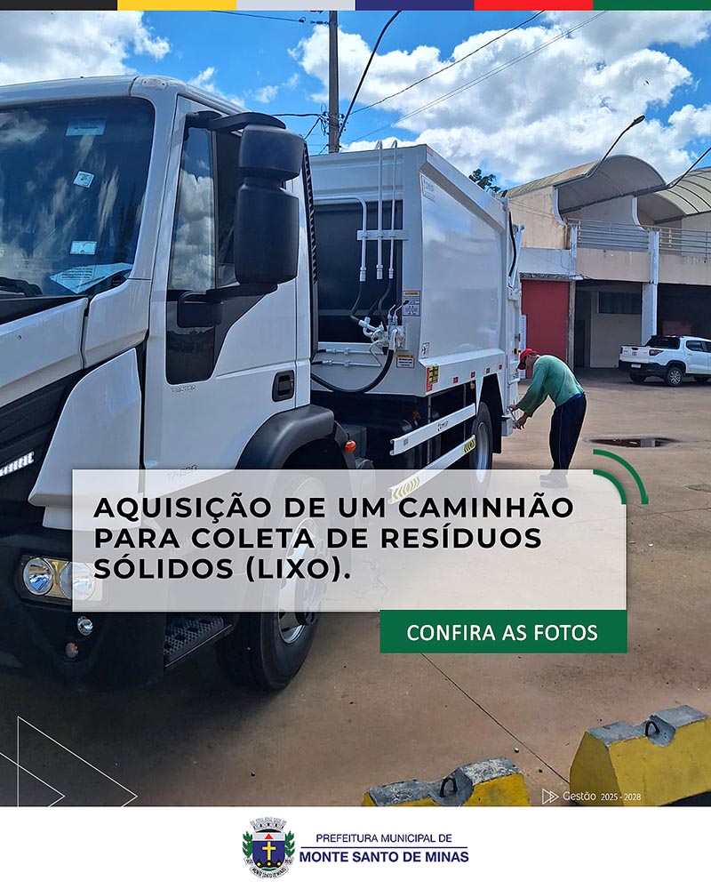 A Prefeitura de Monte Santo de Minas anunciou a aquisição de um novo caminhão destinado à Coleta de Resíduos Sólidos.