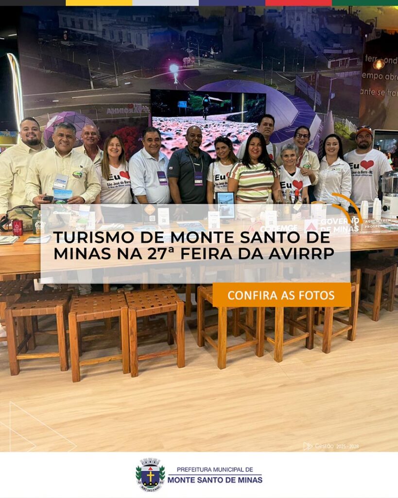 #MonteSantodeMinas #Turismo #AVIRRP2025 #FeiraDeTurismo #DesenvolvimentoRegional #EconomiaCriativa #VisibilidadeTurística #PrefeituraMonteSanto #JFPNoticias #Noticias