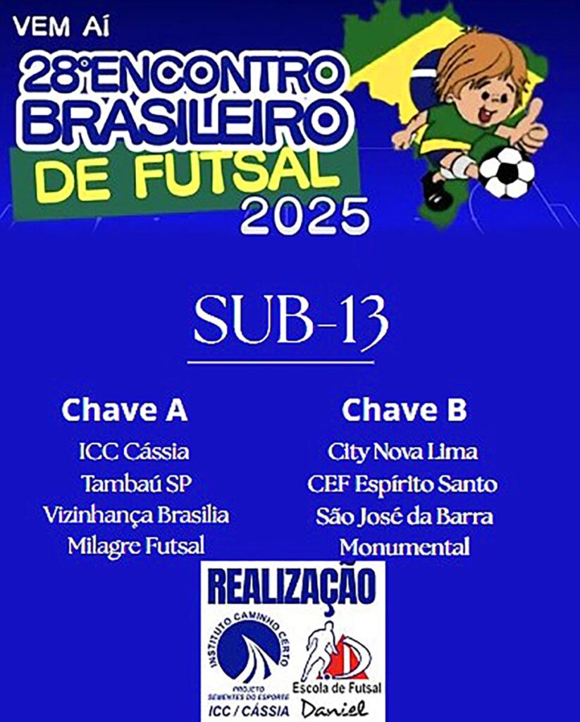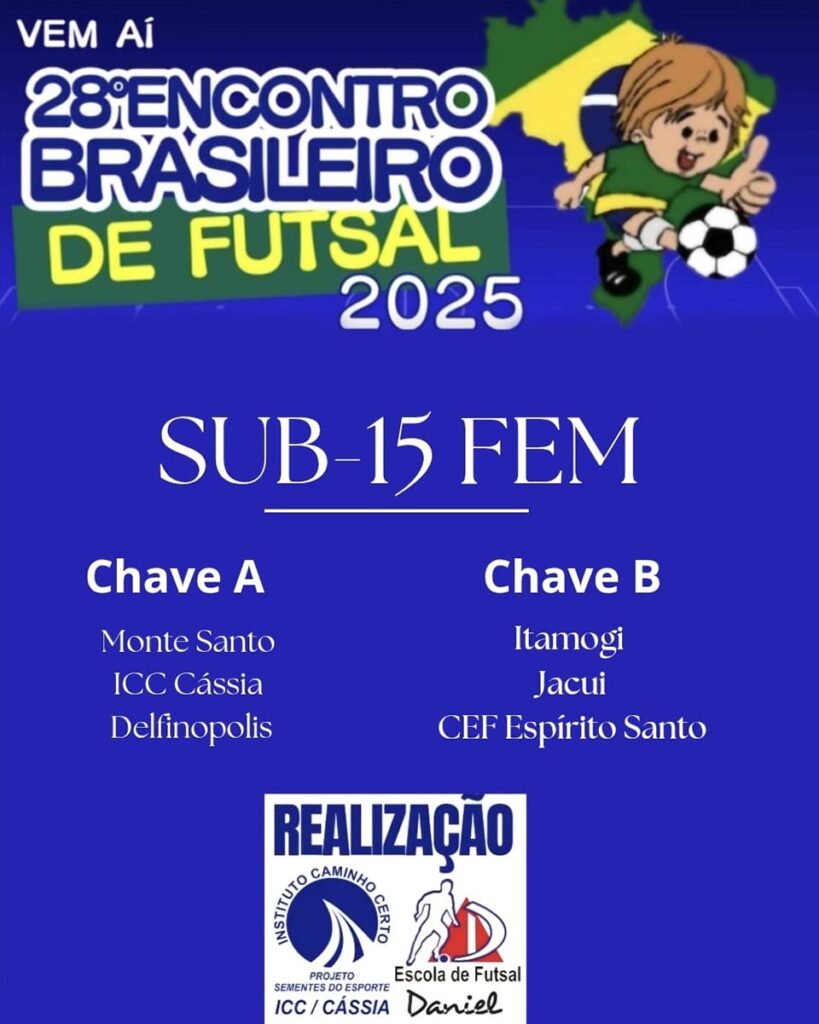 Monte Santo de Minas está entre os municípios participantes do 28º Encontro Brasileiro de Futsal, que será realizado na cidade de Cássia (MG). Organizado desde 1998 pela Escola Futsal Daniel, o tradicional torneio promete movimentar o esporte de base com a presença de diversas delegações de estados como Minas Gerais, São Paulo, Espírito Santo e Distrito Federal.