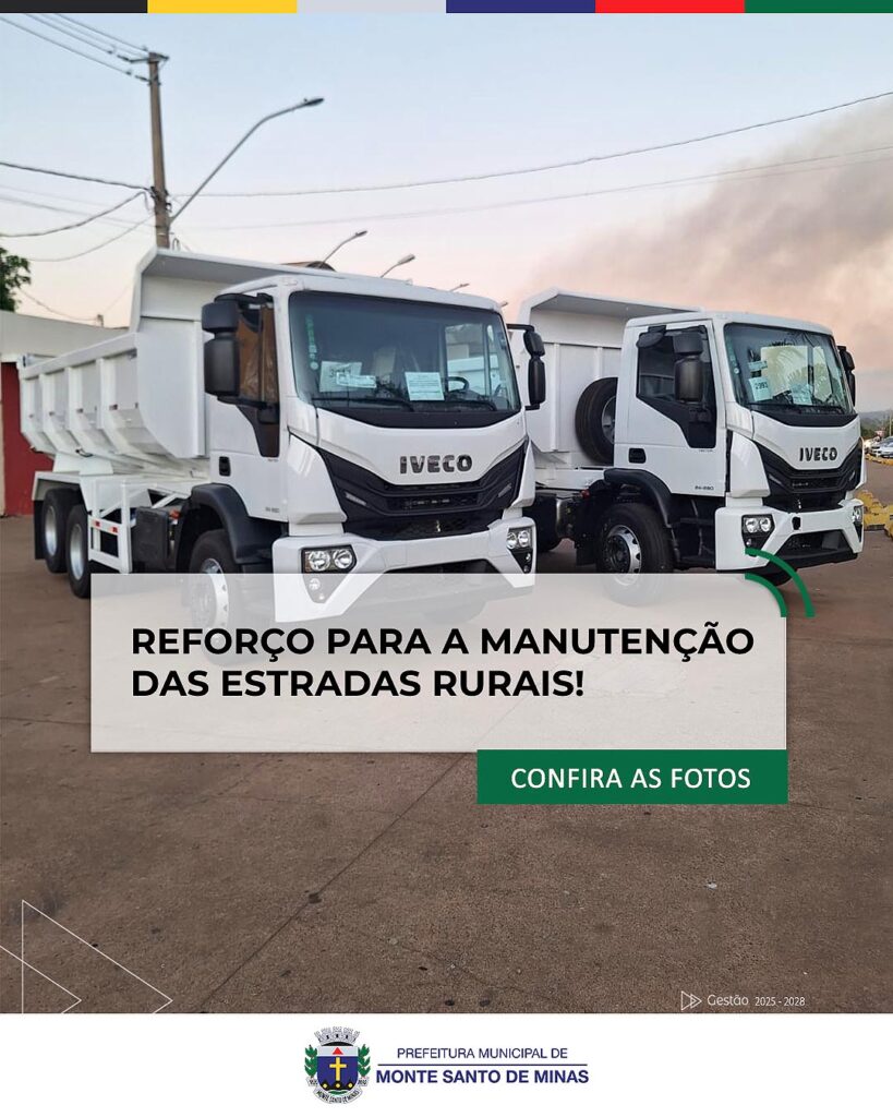 A Prefeitura de Monte Santo de Minas anunciou a chegada de dois novos caminhões para reforçar a frota responsável pela manutenção das estradas rurais do município.
