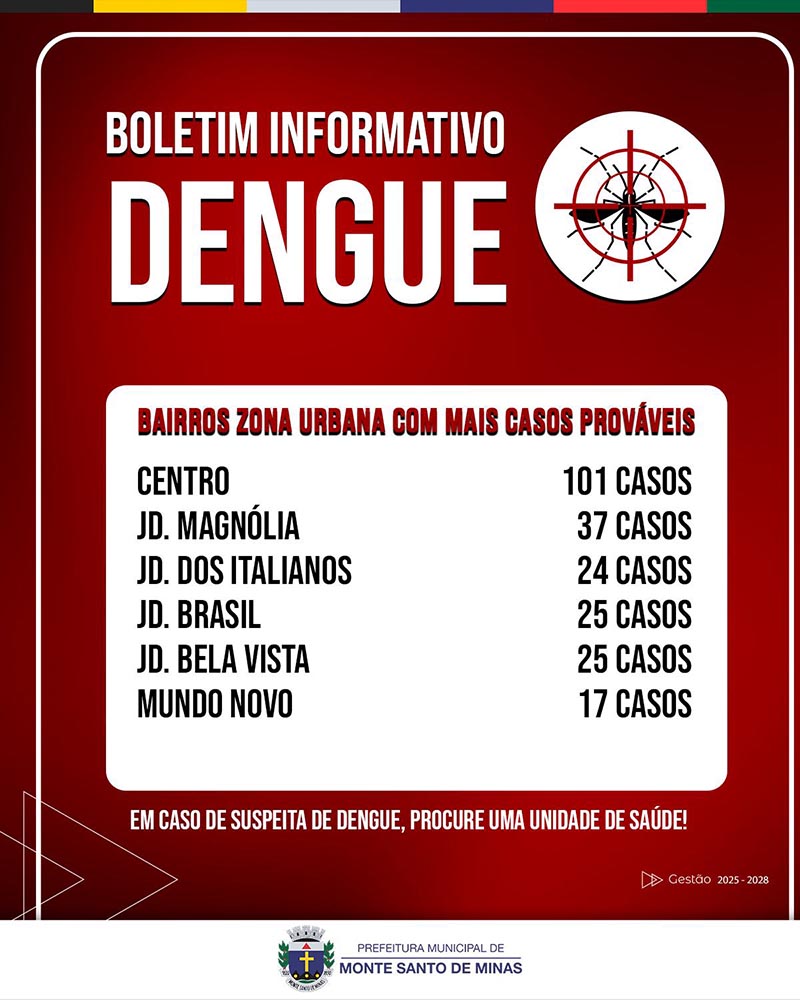 #Dengue2025 #SaúdeMonteSanto #CasosDeDengue #PrevençãoJá #CombateAoMosquito #MonteSantodeMinas #AlertaDengue #JFPNoticias #Noticias #SaúdePública