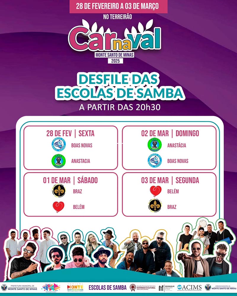 Prepare-se para o Carnaval 2025 em Monte Santo de Minas, com muita música, alegria, tradição e a emoção dos desfiles das escolas de samba!