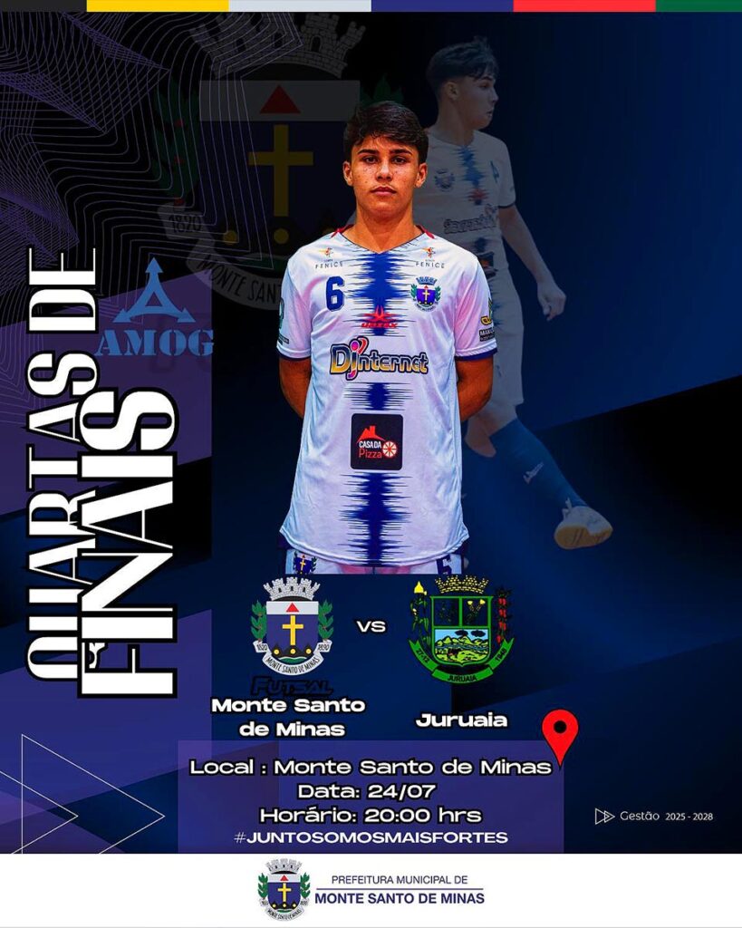 #CopaAMOG #Futsal #MonteSantodeMinas #JFPNoticias #Noticias #Esporte #QuartasDeFinal #TorcidaMonteSantense #Futsal2025 #JuntosSomosMaisFortes