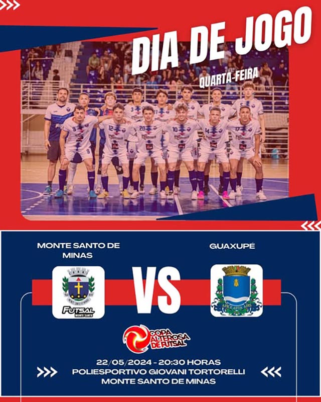 Monte Santo de Minas está em clima de torcida! Nesta quarta-feira, 21 de maio, a cidade recebe a equipe de Guaxupé para uma grande partida da fase de grupos da Copa Alterosa de Futsal 2025. O confronto será às 20h30, no Poliesportivo Giovani Tortorelli, e promete movimentar os amantes do esporte local.