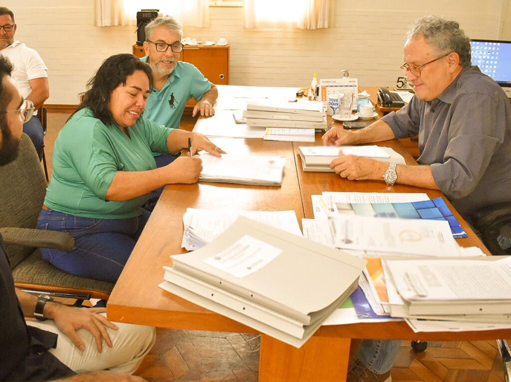 Na última terça-feira (4), o Prefeito Municipal, Eng. Carlos Eduardo Donnabella (Caburé), e o vice-prefeito, Lucimar Moraes (Bala), reuniram-se com o secretário de Assistência Social, Flávio Esteves P. Júnior, o diretor de Convênios, Joel Esteves P. Neto, as presidentes dos Conselhos Municipais da Criança e do Adolescente e da Pessoa Idosa, Vanessa Ferreira e Adriana Ramos, juntamente aos responsáveis pelo Lar da Criança “Allan Kardec”, Lar “São Vicente de Paulo” e Associação dos Artistas e Artesãos “CRIART”, respectivamente, Ivan Ataliba P. Lima, Joaquim José S. X. Fernandes, Maria de Fátima Mazzaro e Norma da Silva. Na oportunidade, assinaram os termos de colaboração que proporcionam o investimento total de R$ 462.399,20 nas instituições do município. As quatro instituições participaram dos editais de chamamento público e tiveram seus planos de trabalho aprovados. Esse investimento garantirá melhorias estruturais e ampliará as atividades oferecidas às crianças, adolescentes, jovens, adultos e pessoas idosas em situação de vulnerabilidade social e risco.