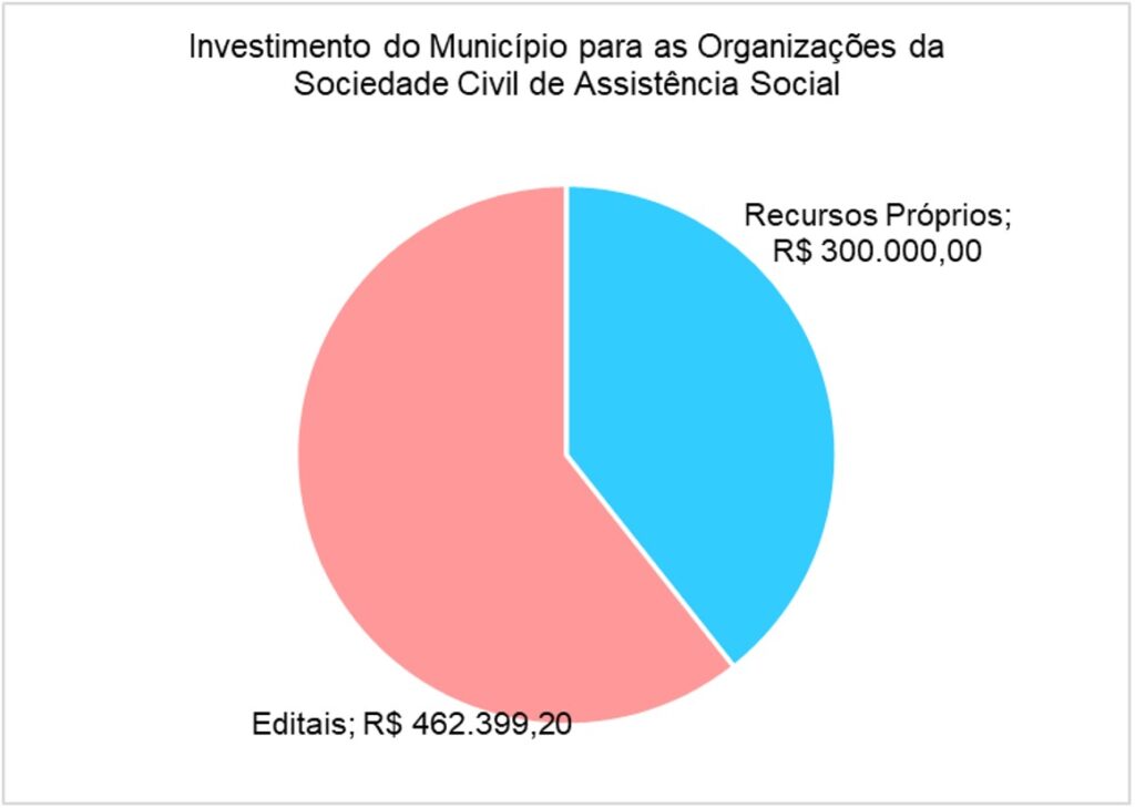 Ao todo, somando os R$ 462.399,20 destinados por meio dos editais de chamamento público e os R$ 300.000,00 anuais de recursos próprios, o investimento total até o momento da Prefeitura Municipal para o fortalecimento das Organizações da Sociedade Civil de Assistência Social alcança R$ 762.399,20.