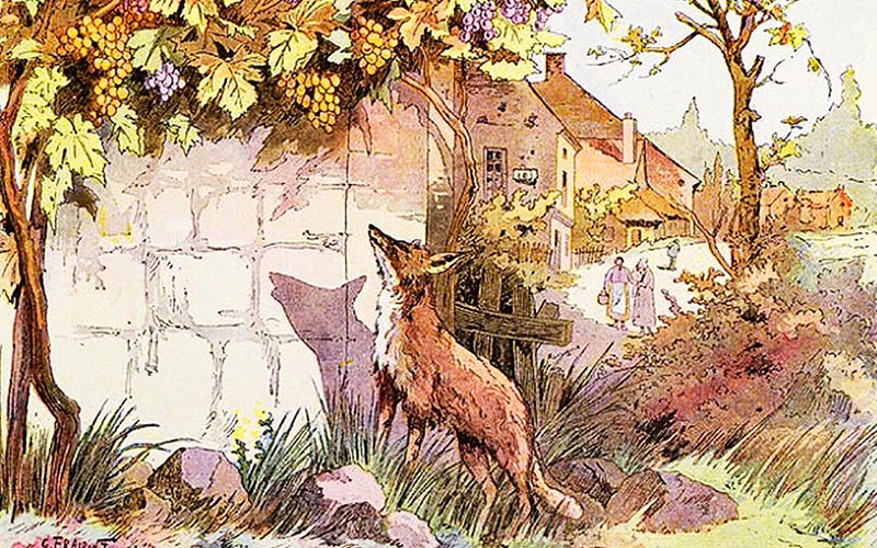 “Impulsionada pela fome, uma raposa que vinha pela estrada encontrou uma parreira com suculentas uvas, que, maduras, estavam penduradas em vistoso cacho, no alto da videira.