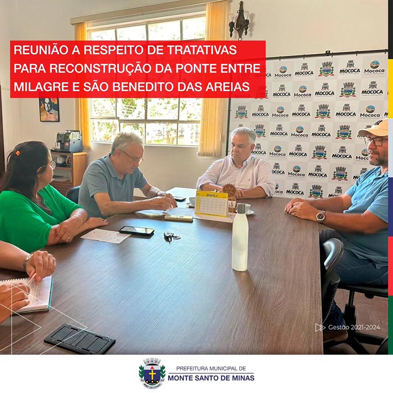 Em uma demonstração de cooperação e comprometimento com o desenvolvimento regional, os prefeitos de Monte Santo de Minas (MG) e Mococa (SP) se reuniram ontem, dia 8 de maio, para discutir medidas visando a reconstrução da ponte que liga os distritos de Milagre e São Benedito das Areias.