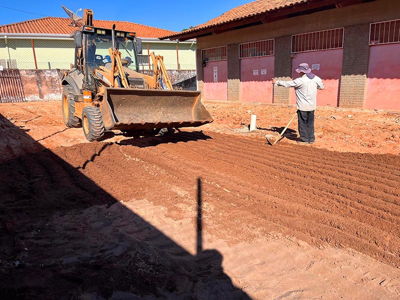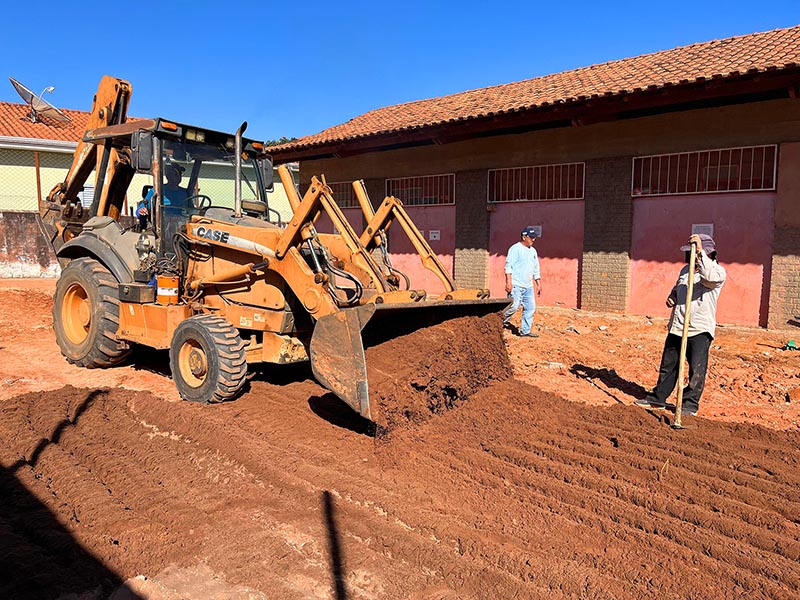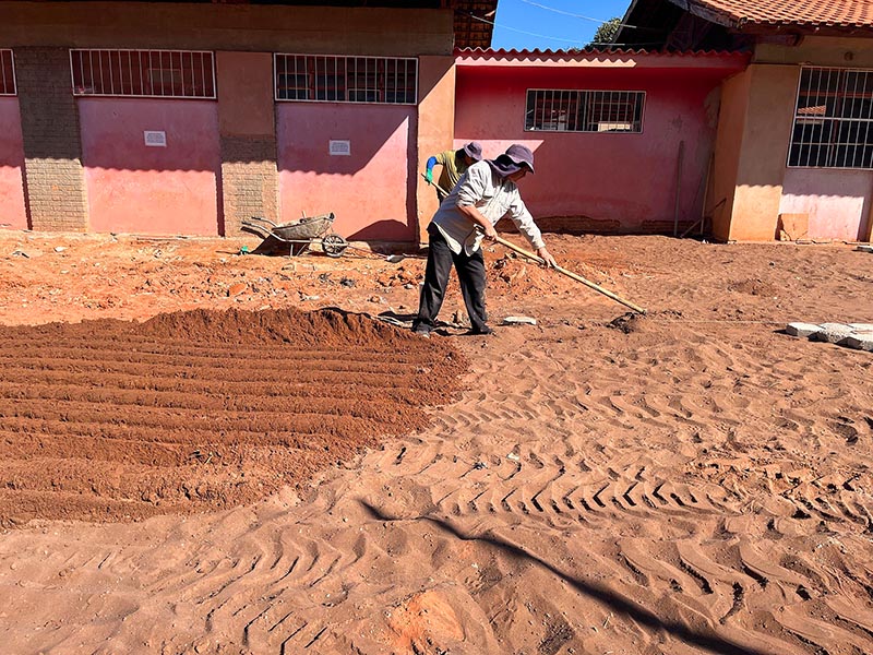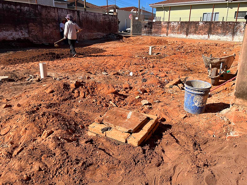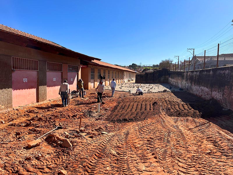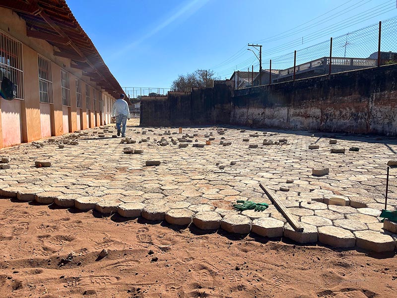 Paralelamente aos serviços de zeladoria, a Prefeitura avança na fase final do calçamento do estacionamento da Unidade Básica de Saúde Vereador João Paulino de Paiva. A unidade está localizada onde funcionava a antiga Escola Municipal Lucas Magalhães.