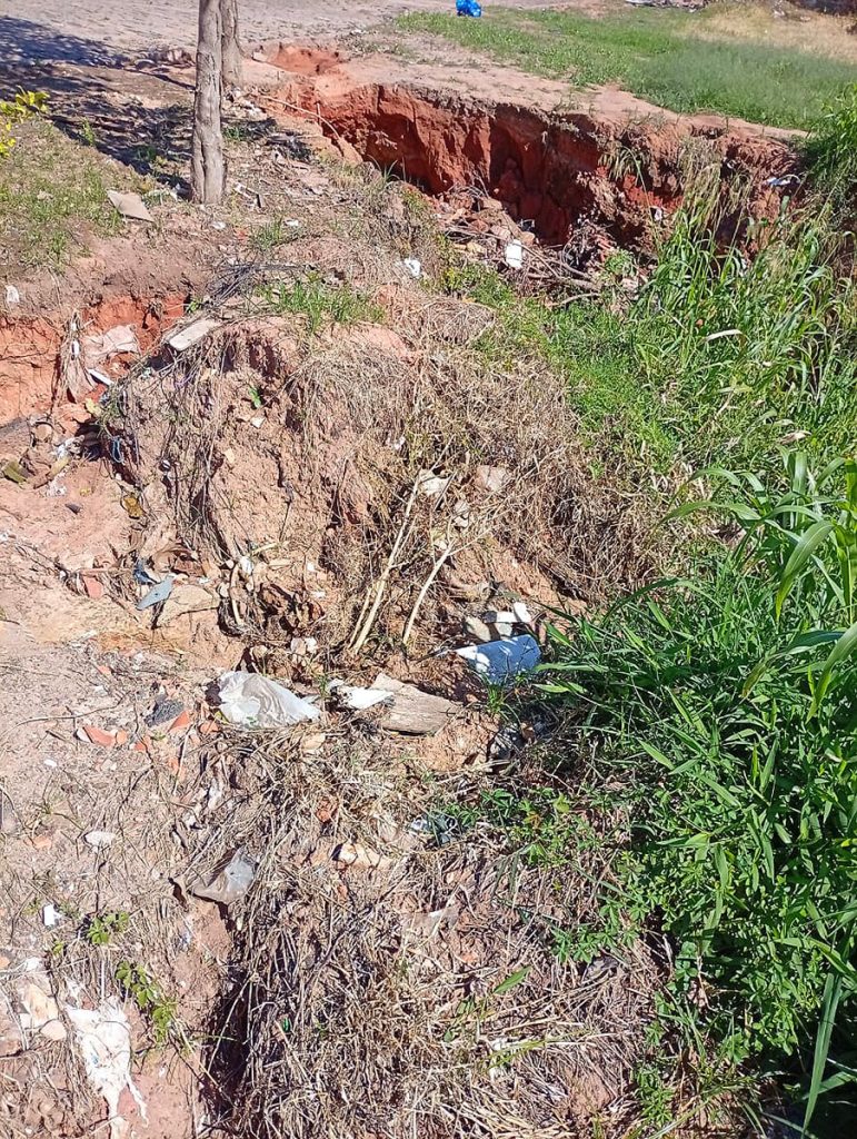 Segundo relatos de moradores, as chuvas constantes têm provocado a erosão do solo, agravada pela ausência de contenção no terreno.