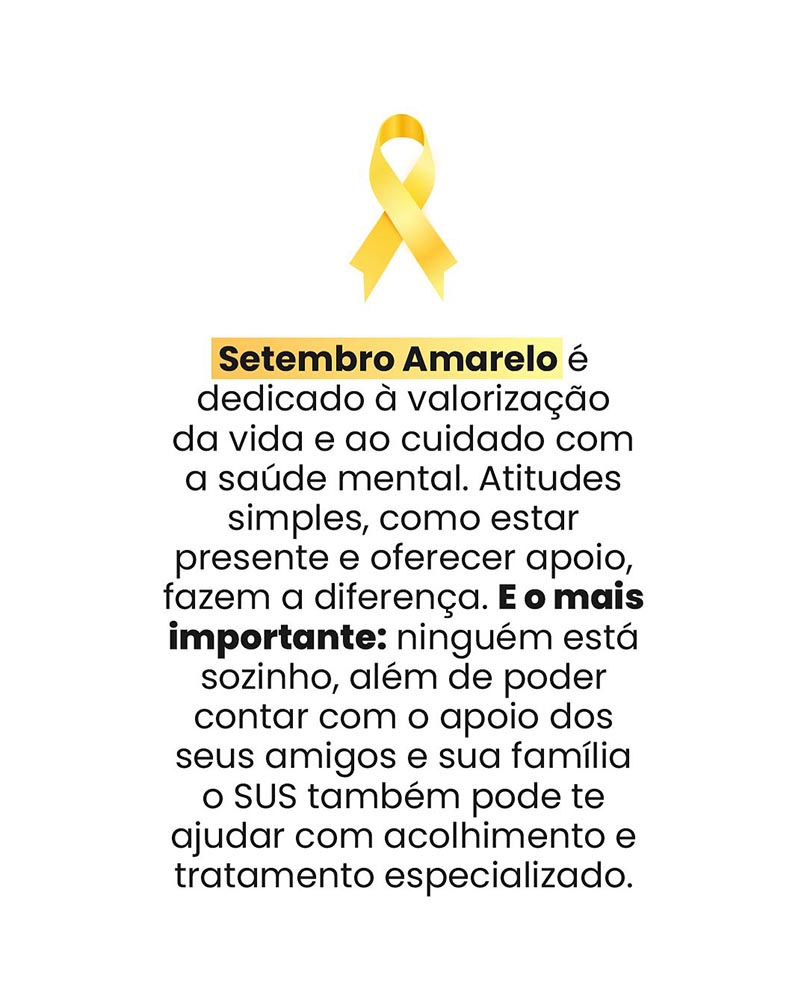Durante o Setembro Amarelo, Monte Santo de Minas reforça a importância de cuidar da saúde mental com a mesma atenção dedicada à saúde física.