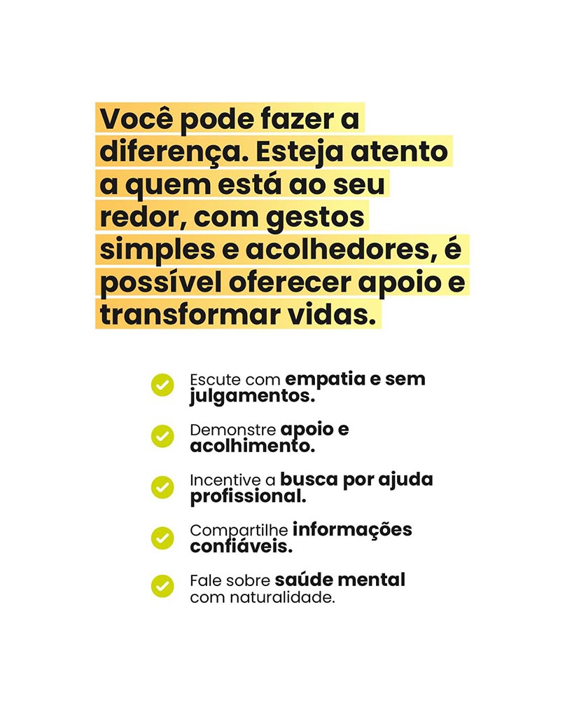 Mais do que incentivo individual, a campanha chama a atenção para a importância de estar presente na vida de familiares, amigos e colegas que enfrentam momentos delicados.