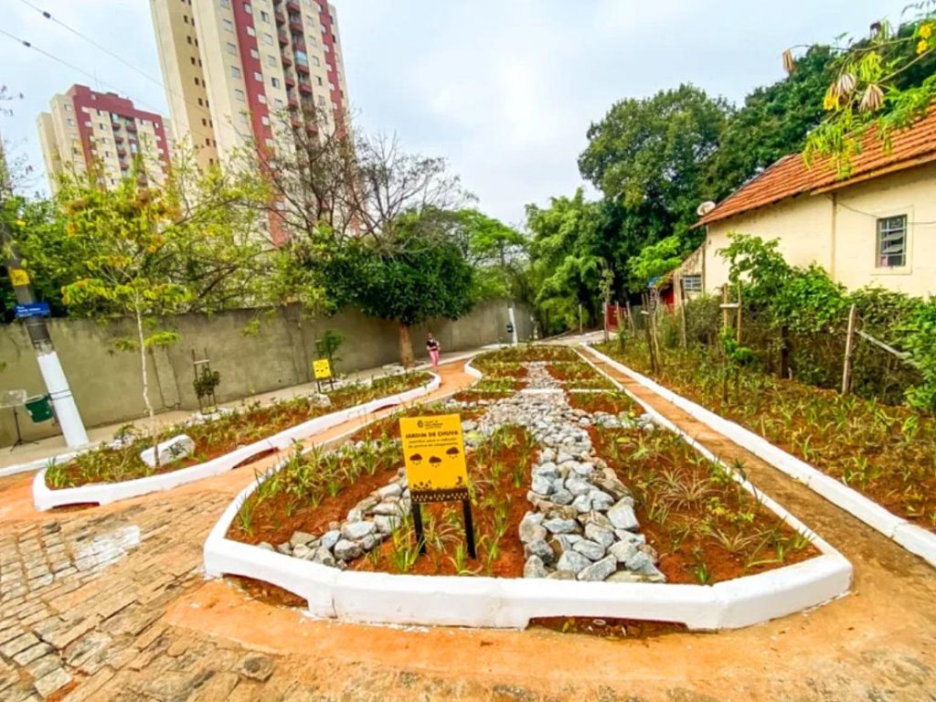 Diferente dos canteiros comuns, os Jardins de Chuva são soluções baseadas na natureza (SbN), projetados com solo permeável e plantas específicas para captar e filtrar a água da chuva.