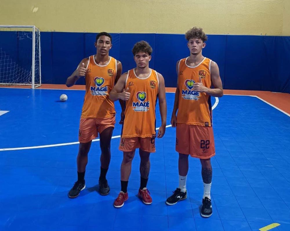 Rael, Gustavo e Lorenzo, destaques do Futsal Monte Santo, celebram a oportunidade de jogar em equipe carioca após aprovação em avaliações.